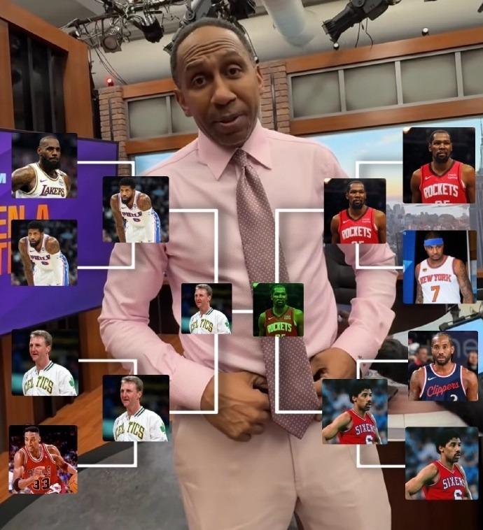 而最近有人让他把NBA历史上8个有名的超级巨星小前锋进行了排名,史蒂芬-A-史密斯的这个排名也引起了一阵讨论。这八人当中,詹姆斯和乔治的PK,A-史密斯判断詹皇不如乔治,拉里伯德和皮蓬PK,他选择的是拉里伯德赢。杜兰特和安东尼的PK,他选择的是杜兰特赢,莱昂纳德和朱利叶斯欧文的PK,他选择的是朱利叶斯欧文胜出。
